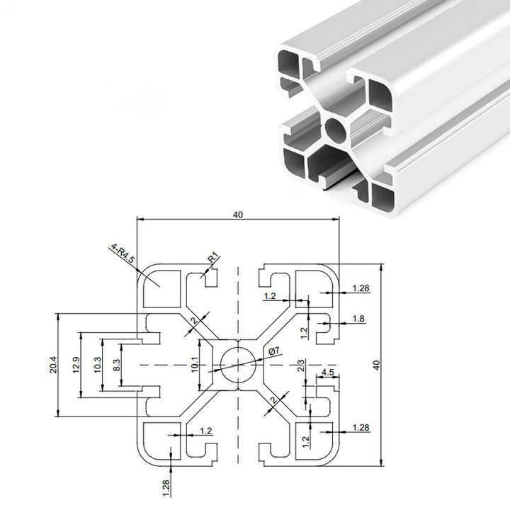 Menyoroti | Ekstrusi aluminium seri 4040,Profil paduan aluminium 40x40,Profil ekstrusi paduan standar Eropa |