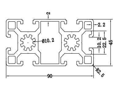 | Menyoroti | Profil Aluminium Ekstrusi Khusus,ekstrusi paduan aluminium industri,profil ekstrusi logam 45x90 |